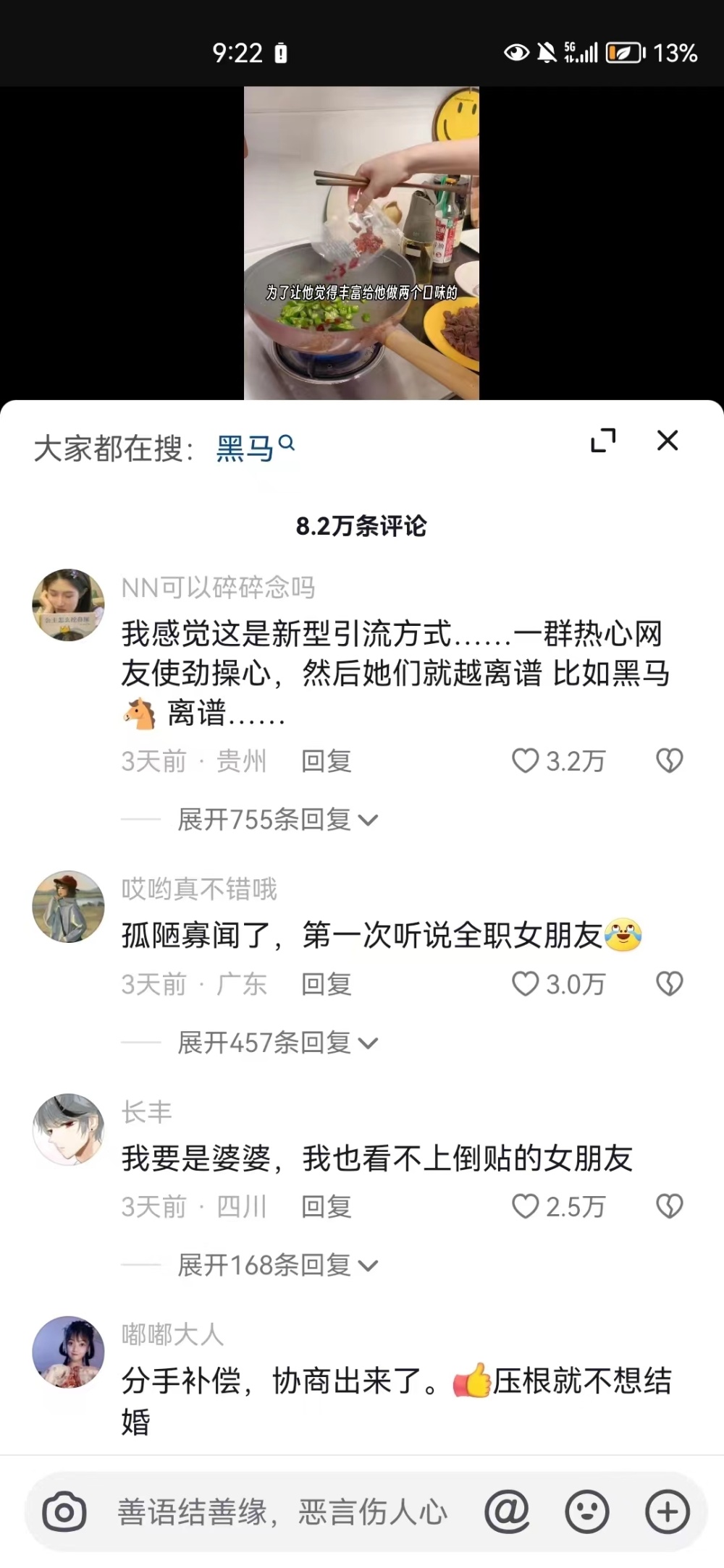 轻萝小扇扑流萤:能不能换一种想法,她男朋友在养她,她爱好做饭,就算一个人生活也要做饭,顺道给她男朋友吃点,她不用工作,缺点是攒不到钱。