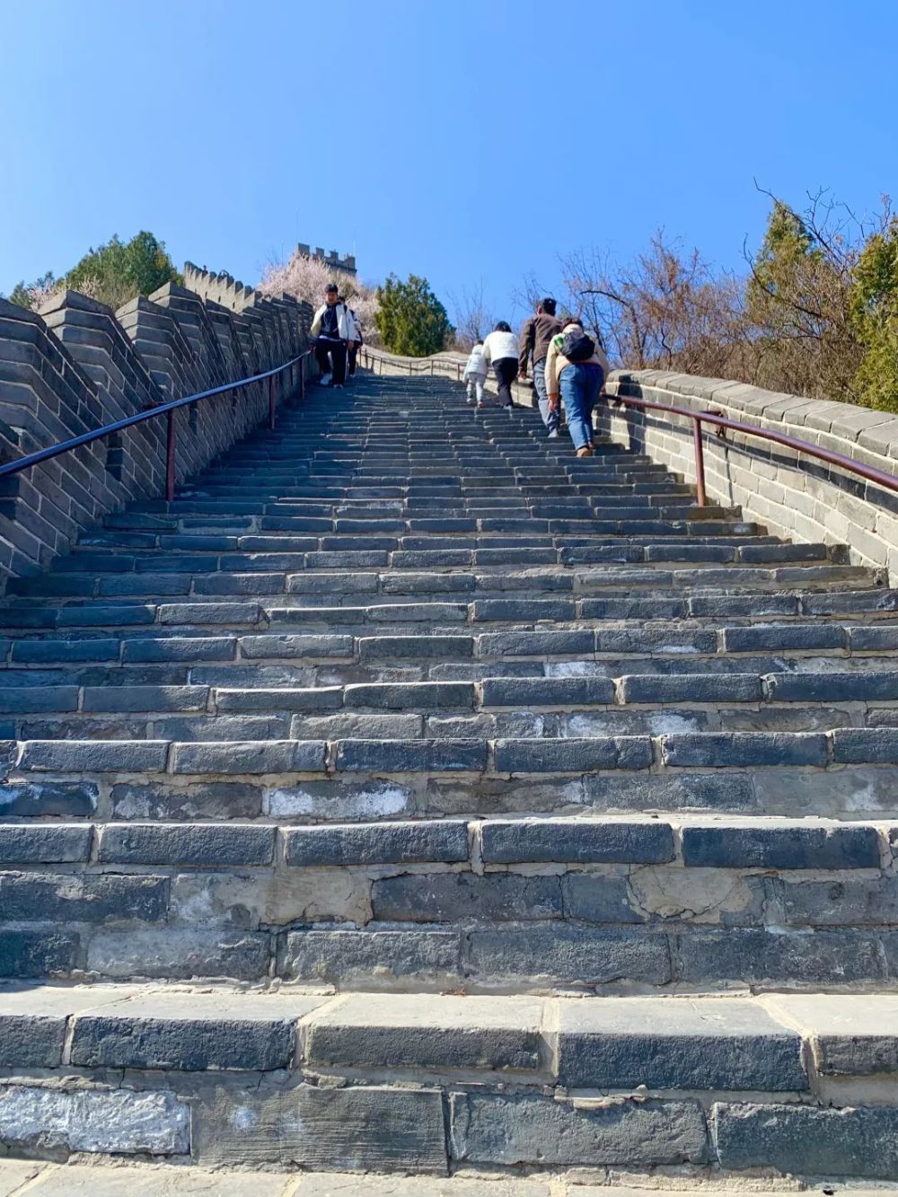 花海栈道基本上是木制楼梯,走起来也不是太费力,下午爬长城时,则是十分挑战自我了,有的路段很陡峭,比较烦人的则是时高时低的台阶,不断交替攀登,太耗体力了。