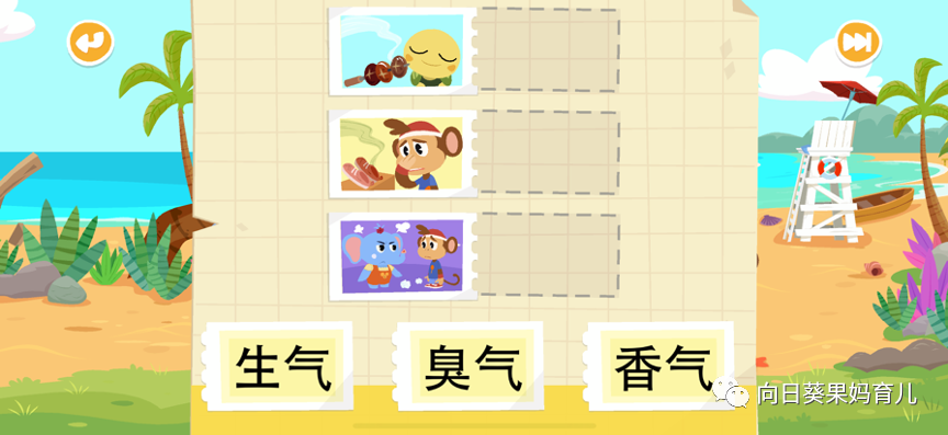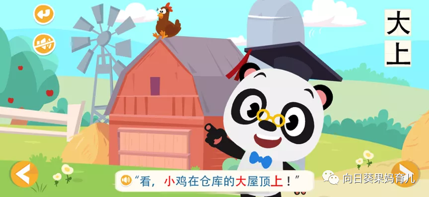 接下来是新课。全动画场景的识字课堂,每次都不一样,有托托的小书房、海边、牧婶的农场……生活化场景,我家娃每次都能主动发现汉字,也更能理解汉字。