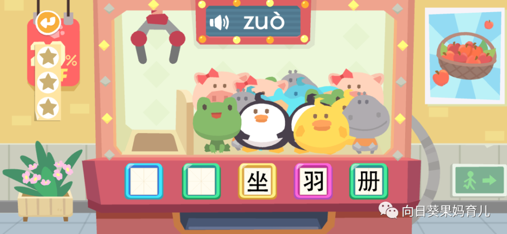 接下来就是识字互动小游戏,这个我必须五星好评。小游戏都很简单但又有趣,紧紧围绕汉字学习而设计,没有一点花里胡哨的成分在,完全不担心孩子会沉溺在其中。