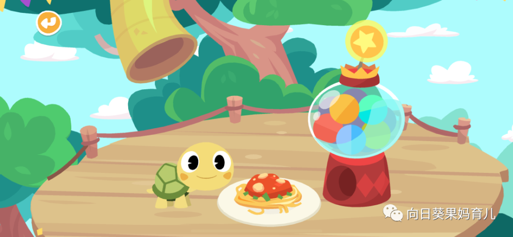 每次把四个任务都完成后,孩子会收到一颗小星星作为奖励,用小星星作为钥匙还可以获得一份随机食物来喂托托,每次到这个环节,孩子都特别有成就感,我觉得这样的鼓励措施很赞!