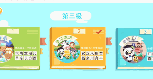 熊猫博士识字的课程安排从来不单独只讲这个字,而是会将词语、句子贯穿起来学习,这样每个字学下来,孩子掌握的不单单是这个字,而是词语和句子,也就能更好地为阅读与写作打基础。
