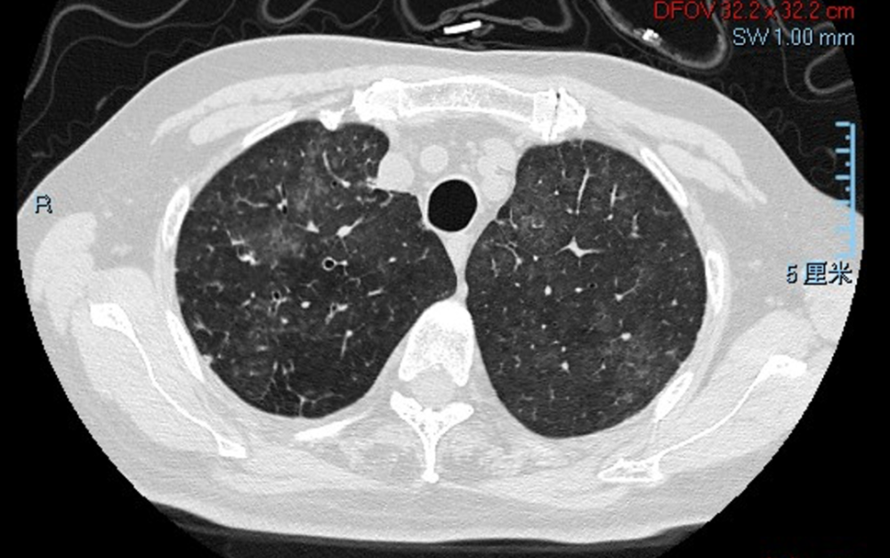 现病史:1月余前(2020年12月底)无明显诱出现间断发热,体温最高达38.9℃,伴咳嗽,咳黄白粘痰,伴乏力,无胸痛、咯血、呼吸困难,无口干、眼干、皮疹、关节痛等不适。