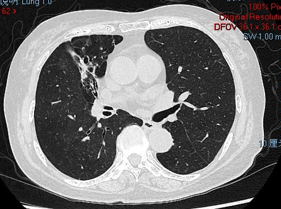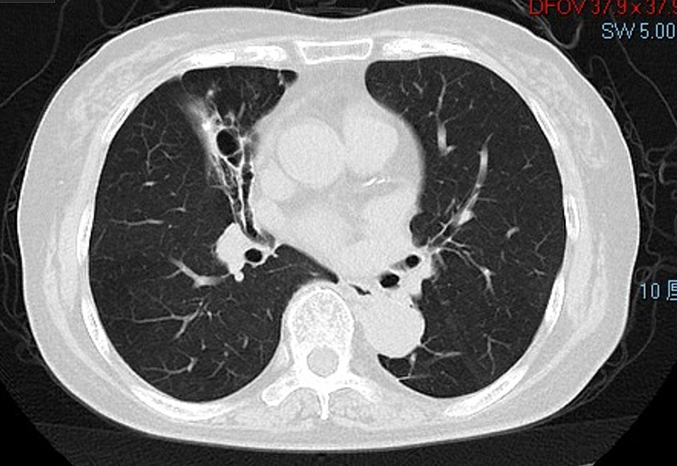 支气管扩张病史20余年,偶有咳嗽、痰中带血;