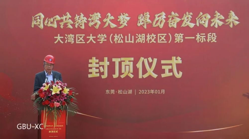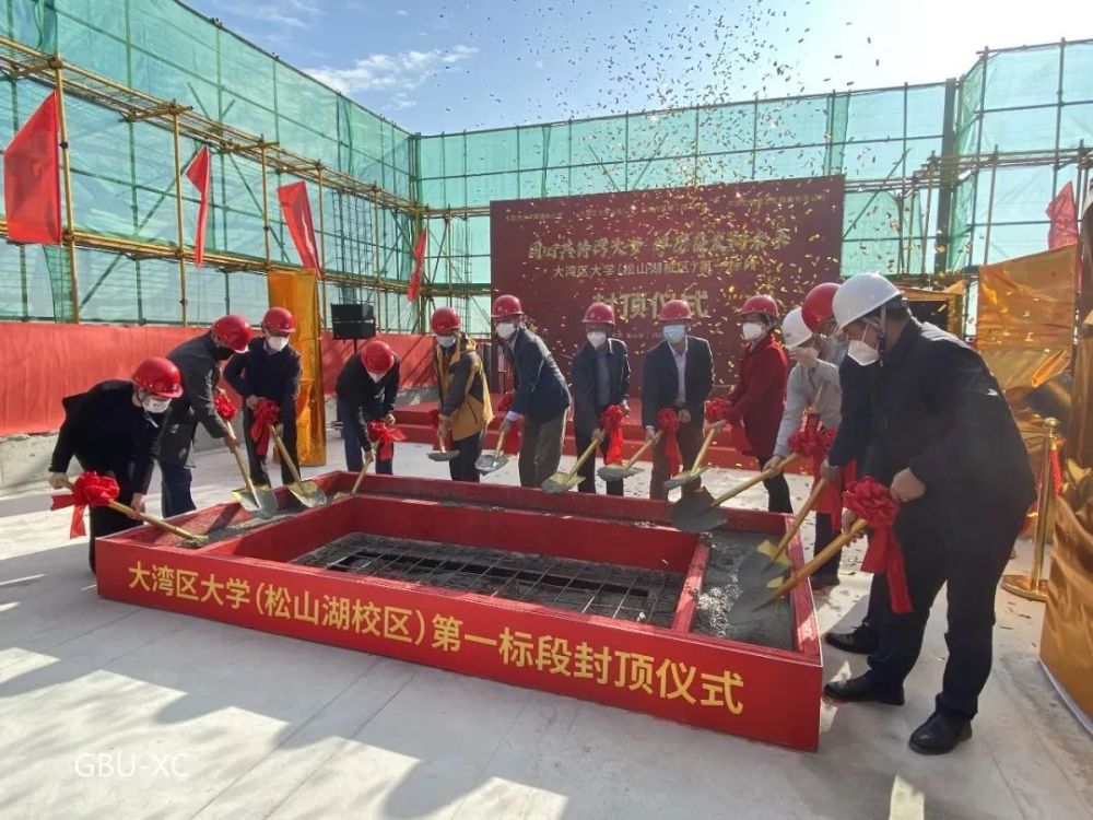 东莞市人大常委会副主任郑国洪,大湾区大学筹建负责人田刚院士,市大学筹建办、市城建工程管理局、松山湖管委会、大岭山镇政府、大湾区大学(筹),以及项目设计、施工、监理单位有关负责人和员工代表参加活动。