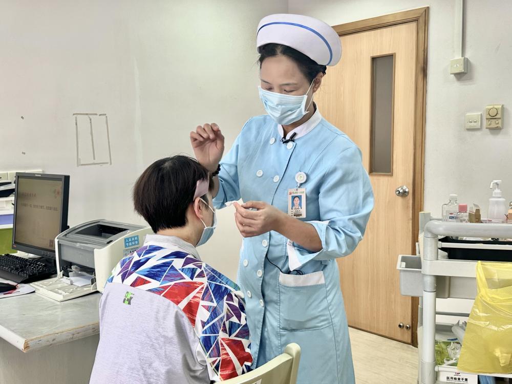 “我去年6月份肺癌手术,之后跟随黄护士长做耳穴贴压、针刺等治疗,效果不错,我感觉舒服很多,心情也不错。所以坚持一周来一次。”黄护士长表示,中医适宜技术操作方便、安全、有效、副作用少等优势。“耳穴位贴压疗法可以治疗近百种疾病,可有效缓解疼痛,改善视力,增强抗病能力等。血透患者的失眠,焦虑,皮肤瘙痒,骨关节疼痛等并发症通过耳穴压豆治疗也得到明显改善。”