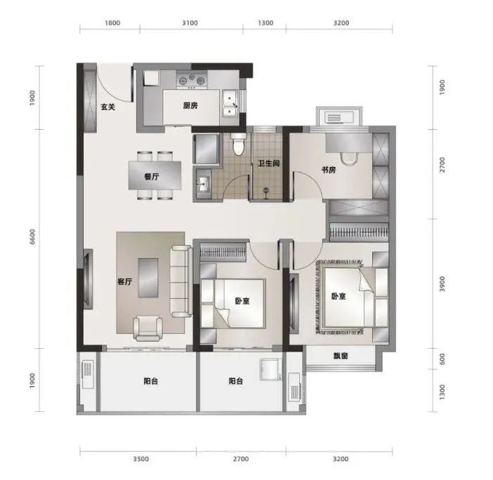 离学府最近的三房,以约9.4米朝南面宽、约6.2米朝南阳台、U型美味厨房打造三室空间,安放全家人的幸福时光。
