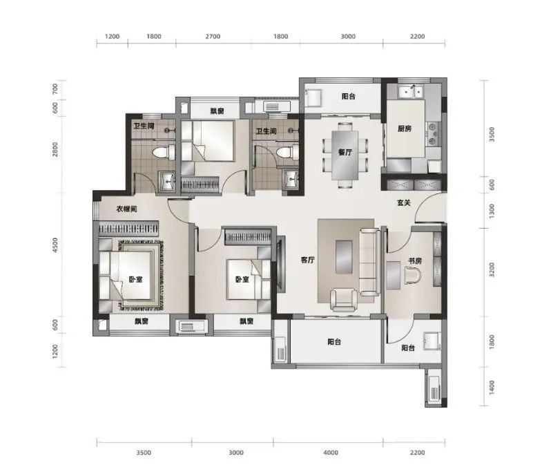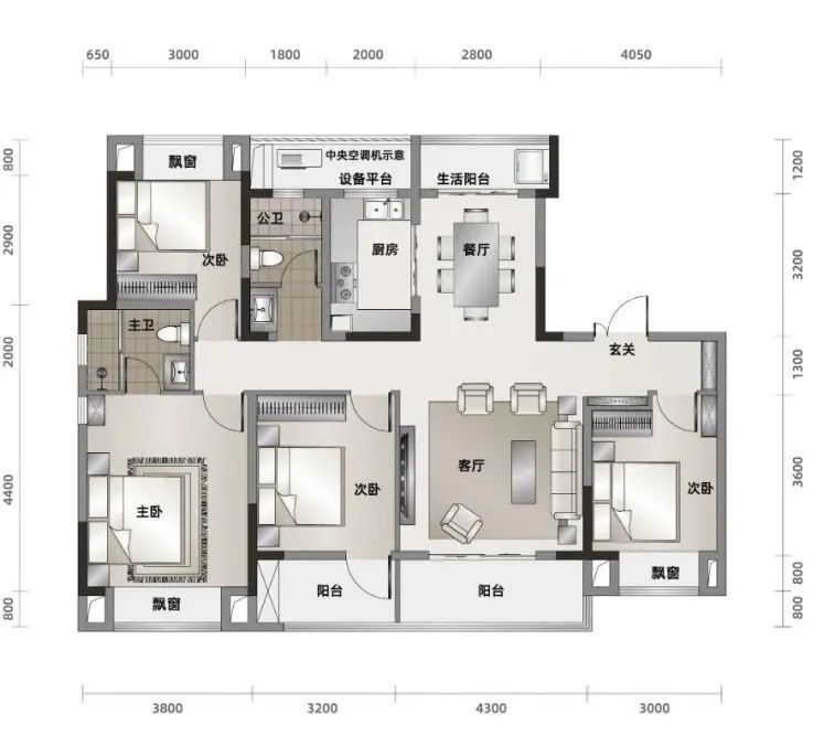 建面约125㎡全景四房