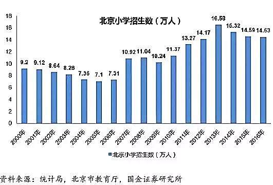 上海北京面临的是另一个问题:外来人口的急剧涌入,使得新生人口显著增加,上海和北京的小学和中学生,正在急剧增长。但这一部分带来的竞争,刚刚体现在幼升小和小升初,还没来得及体现在高考,甚至还没来得及反映在中考。