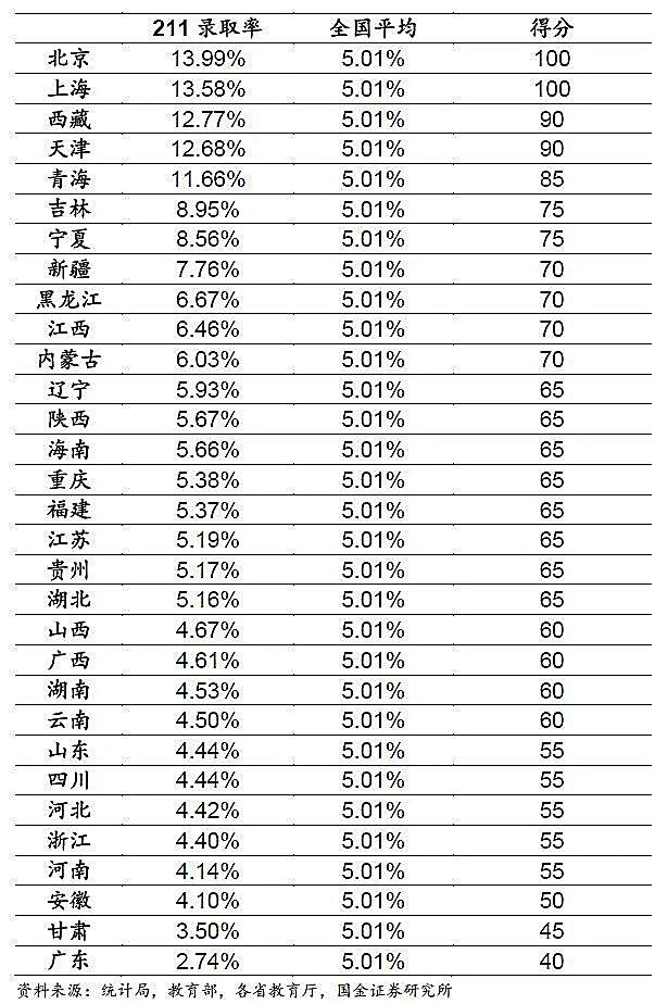 211录取率:指该省所有高考考生中,被211高校录取的人数比例。全国平均大约是5.01%。