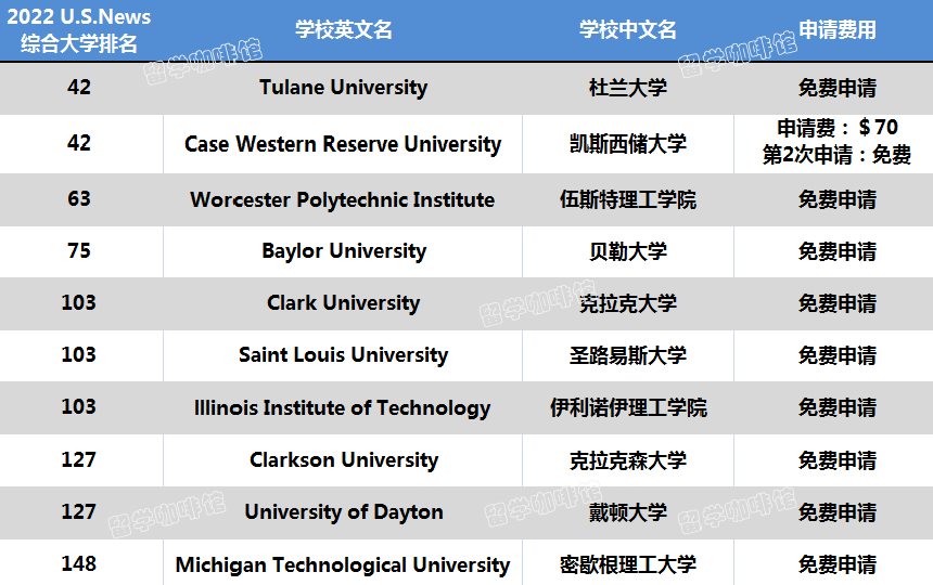 说时迟那时快,馆长整理了刚出的 2022 年 U.S.News 综合大学榜单上排名前150,免申请费用的大学,然后给大家简单梳理一下吧~