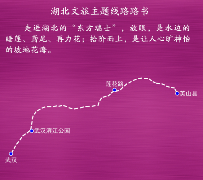 武汉—武汉滨江公园—金石路—莲花路—英山县(179公里,车程约2小时)。