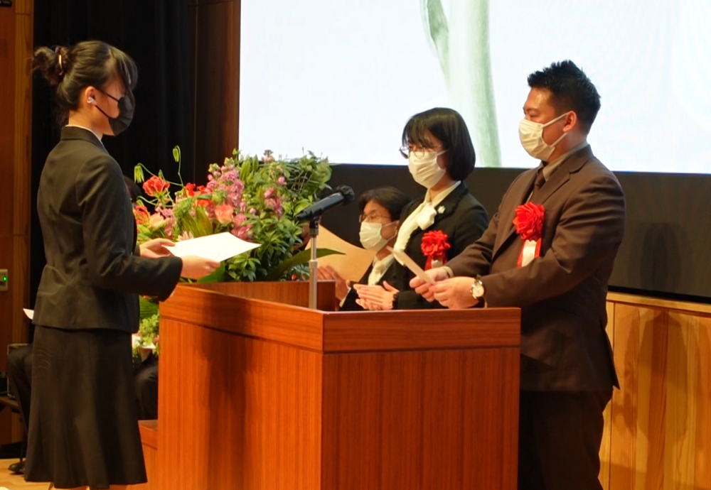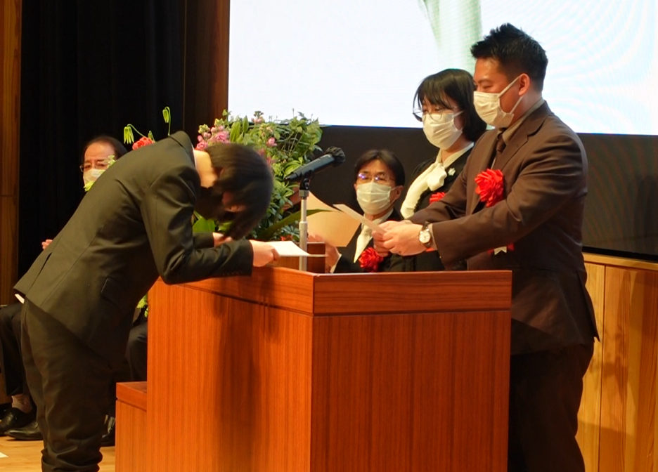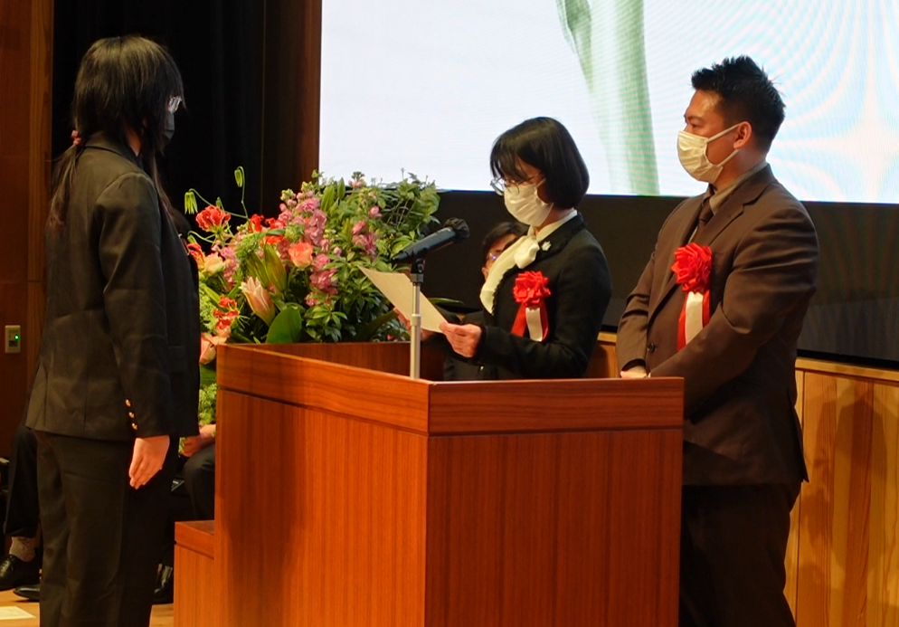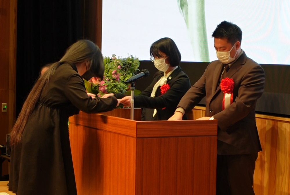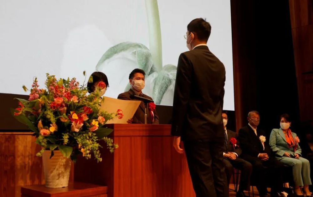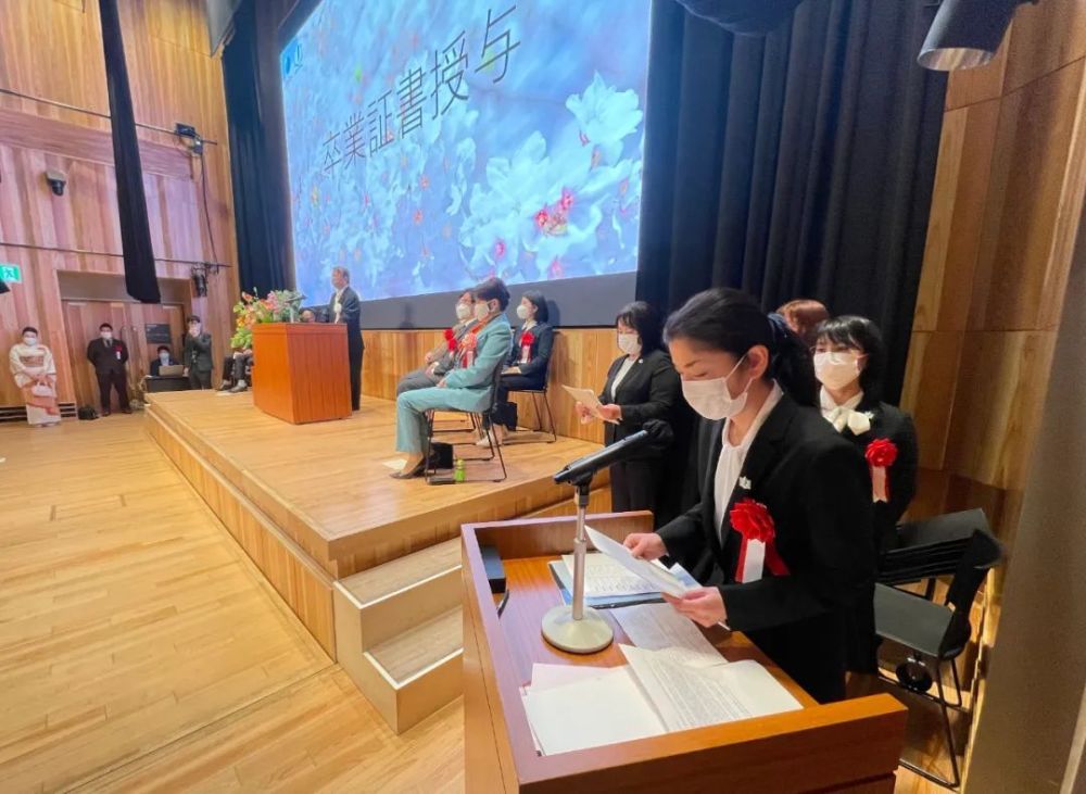 在嘉宾们对毕业生表达了殷切祝福之后,学院理事长栗田平顺为毕业生代表颁发了毕业证书。