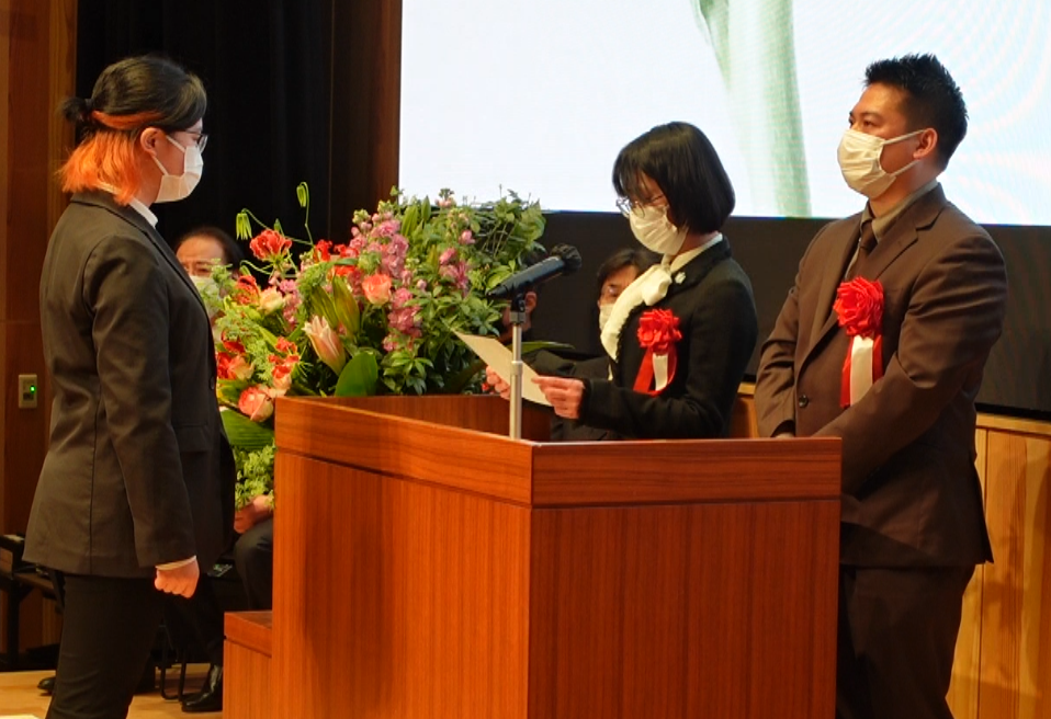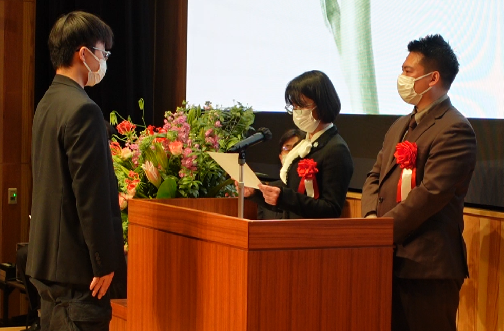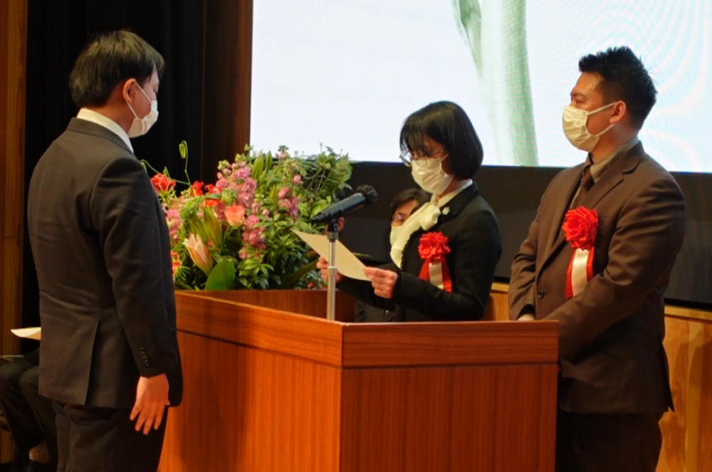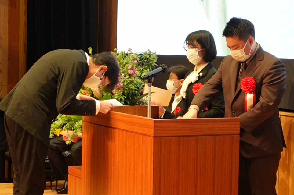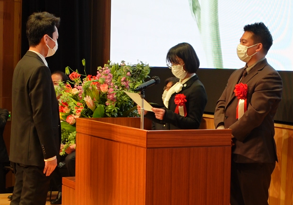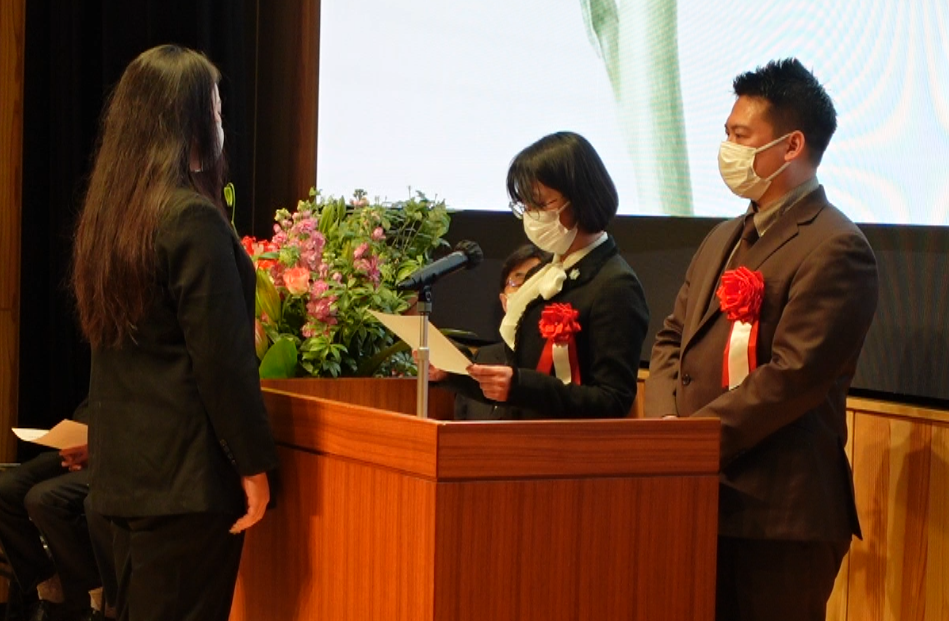 在嘉宾们对毕业生表达了殷切祝福之后,学院理事长栗田平顺为毕业生代表颁发了毕业证书。
