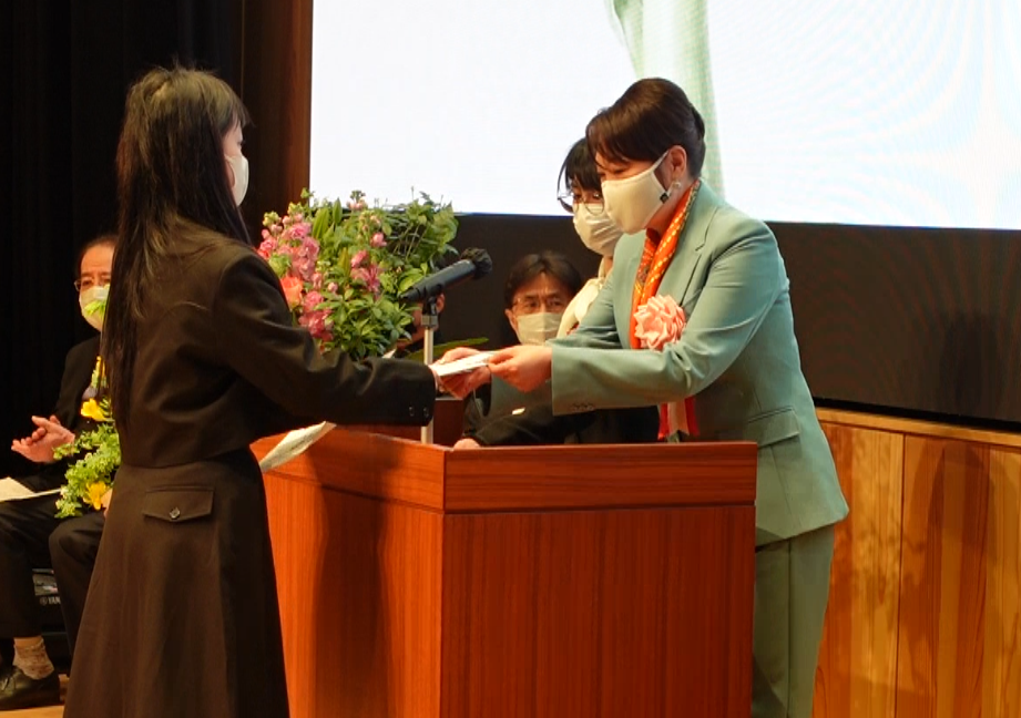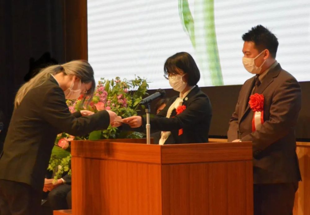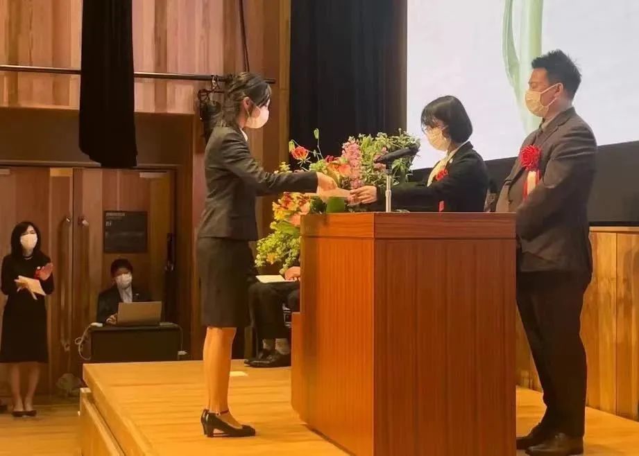 最后,千代田教育集团会长栗田秀子分别为合格了日本第一名校——东京大学的黄沐瑶同学,日本国立艺术大学的最高学府——东京艺术大学的齐倍琳同学。颁发了“千代田教育集团基金会奖”及奖学金。