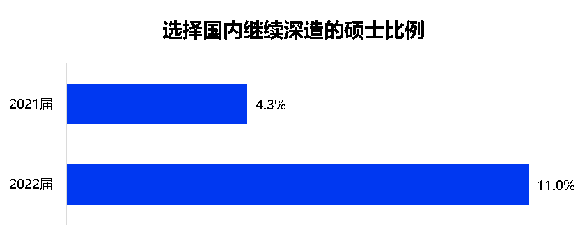学历内卷是个老生常谈的话题,不仅考研,读博都已成为“千军万马过独木桥”。报告显示,2022年硕士研究生选择“继续学习”的占11%,明显高于2021年的4.3%,翻了将近3倍!