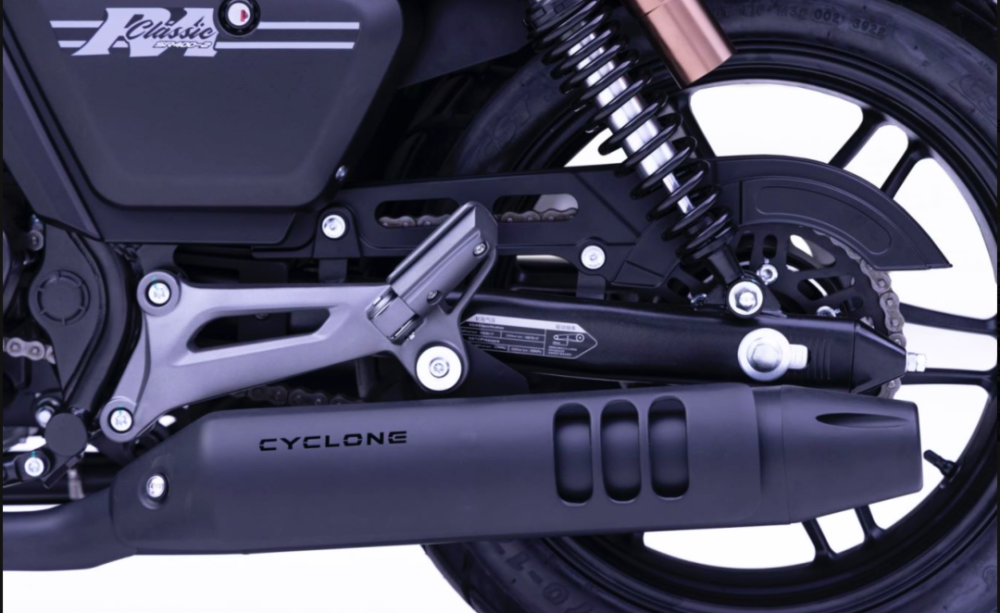 总得来说,一眼望去,很多人都会被那低矮的座垫和与后轮同心的车尾造型吸引,它们时刻彰显着经典巡航车的复古特征。与地面平行的双出鱼雷排气管,低调内敛得让人心疼,但这种独特的结构其实“别有用心”,不仅能拉低车身整体的视觉焦点,还能更有效的降低骑行停车时高温部件接近车主腿部的可能。全段覆盖的暗金色排气防烫板进行了激光刻字和侧面开孔处理凸显质感,结合宽度饱满的并列双缸发动机让RA401看起来粗壮敦实肌肉感十足。因为它的坐高只有735mm,整体看上去略显憨厚敦实,好在大部分人都能轻松双脚着地,并不用担心倒车或者难过弯等实际问题。