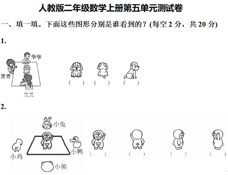 人教版二年级上册数学《第五单元》测试卷有答案!