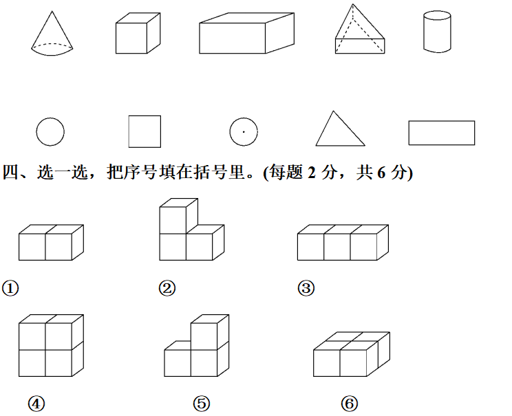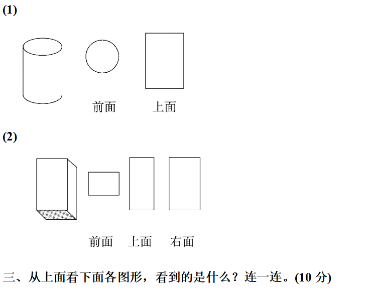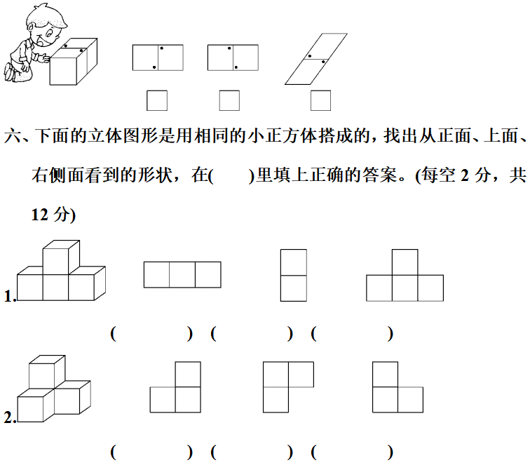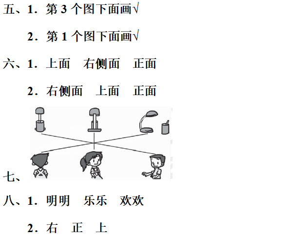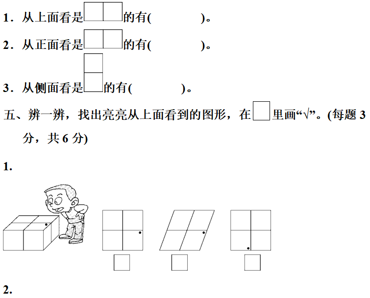 1.小丽看到的是哪幅图?在下面的括号里画“√”。