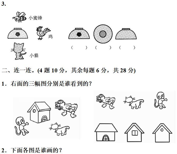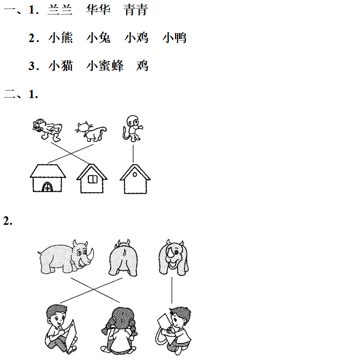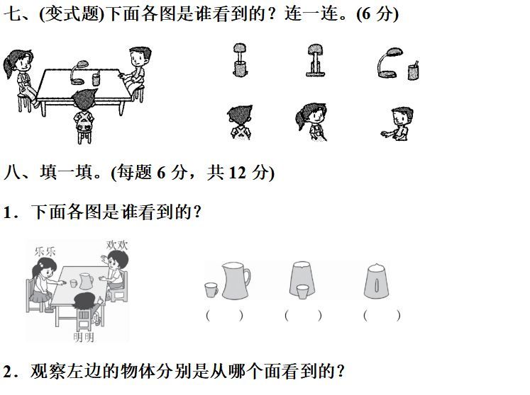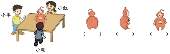 2.下面右边的这些图分别是谁看到的?在括号里填上小朋友的名字。