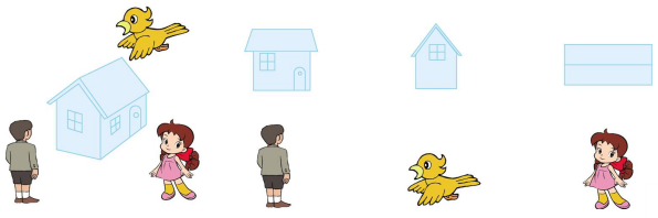 2. 哪幅图是小鸟看到的?在里画“√”。哪幅图是大象看到的?在里画“○”。