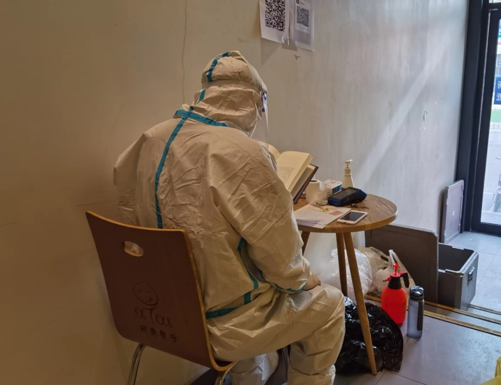安保人员,守住酒店的前后两道门,巡查每个角落,筑牢安全屏障,他们白班夜班交替进行……有一个安保人员,竟在接送人员的空隙间“偷偷”阅读,他坐在那里,举着书本,静静地看着,让人感觉好有力量。