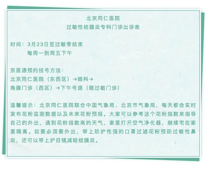 自3月23日起,北京同仁医院开设过敏性结膜炎专科门诊。
