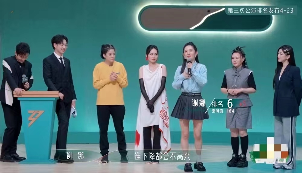 第三次公演排名,最意外的当属谢娜。她的个人喜爱度排名跌出了前5位,排在第6位。要知道,第二次公演,她还排在第1位。