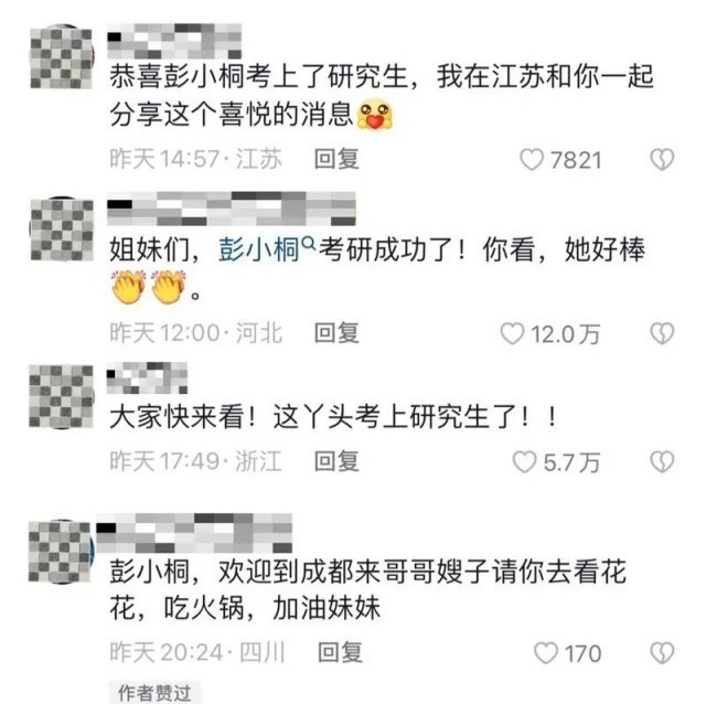 “恭喜彭小桐考上研究生