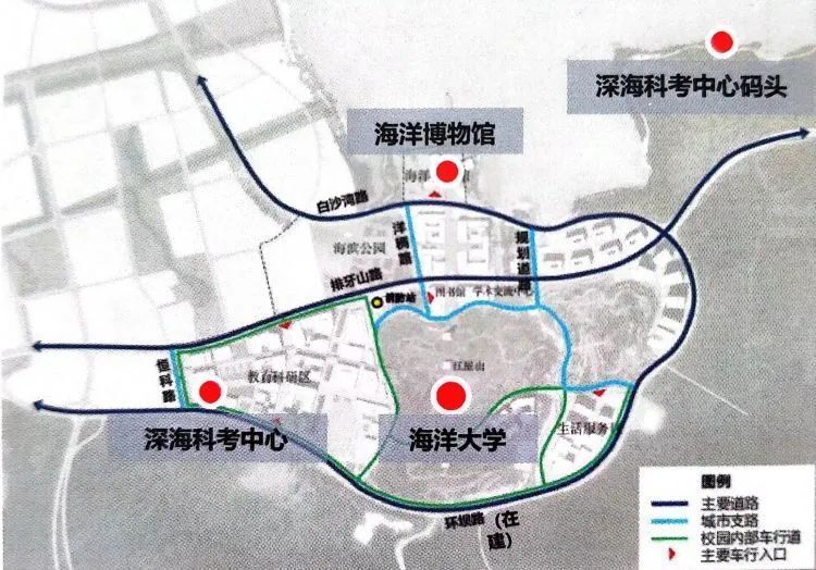 深圳海洋大学、国家深海科考中心、深圳海洋博物馆一体化建设示意图