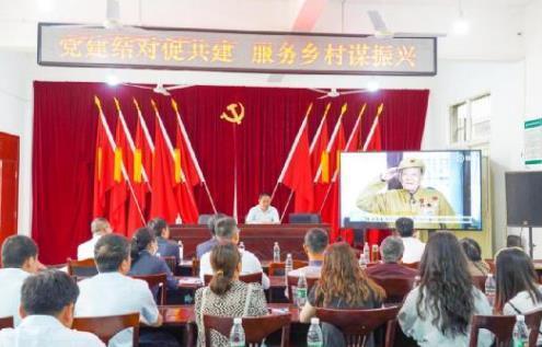 建行新都支行在乡村振兴主题活动中播放张富清老英雄事迹视频。建行四川省分行供图