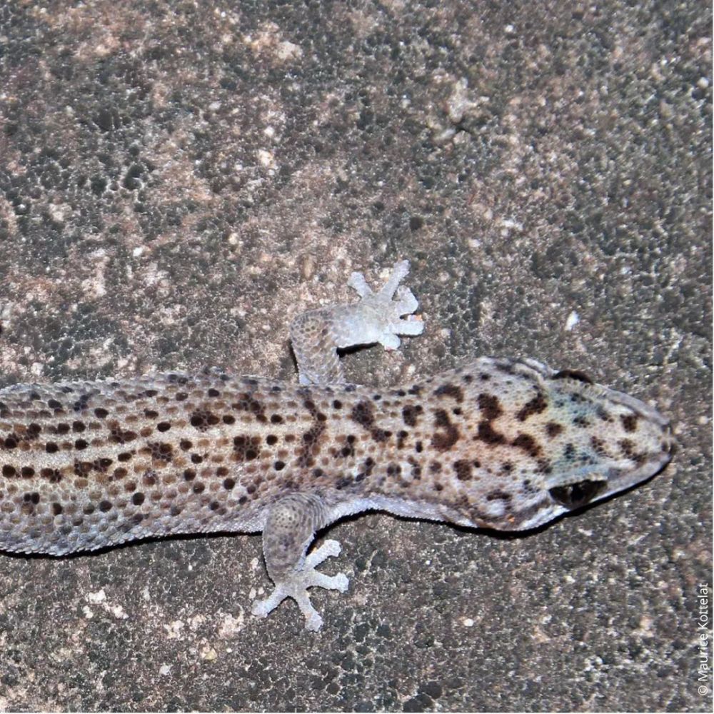 研究人员在夜间的砂岩上发现了这一新物种,它们生活在被建筑工程破坏的次生林中。此物种属壁虎科叶趾虎属,有独特的色彩纹路,使其在外形特征上可以与其他种区分开来。该物种被认为是老挝本土物种,鉴于目前其唯一已知的栖息点位于老挝首都万象塞纳通区附近一个未受保护的区域,因此需要进一步研究以确定其种群分布和数量,进而确定保护方案。