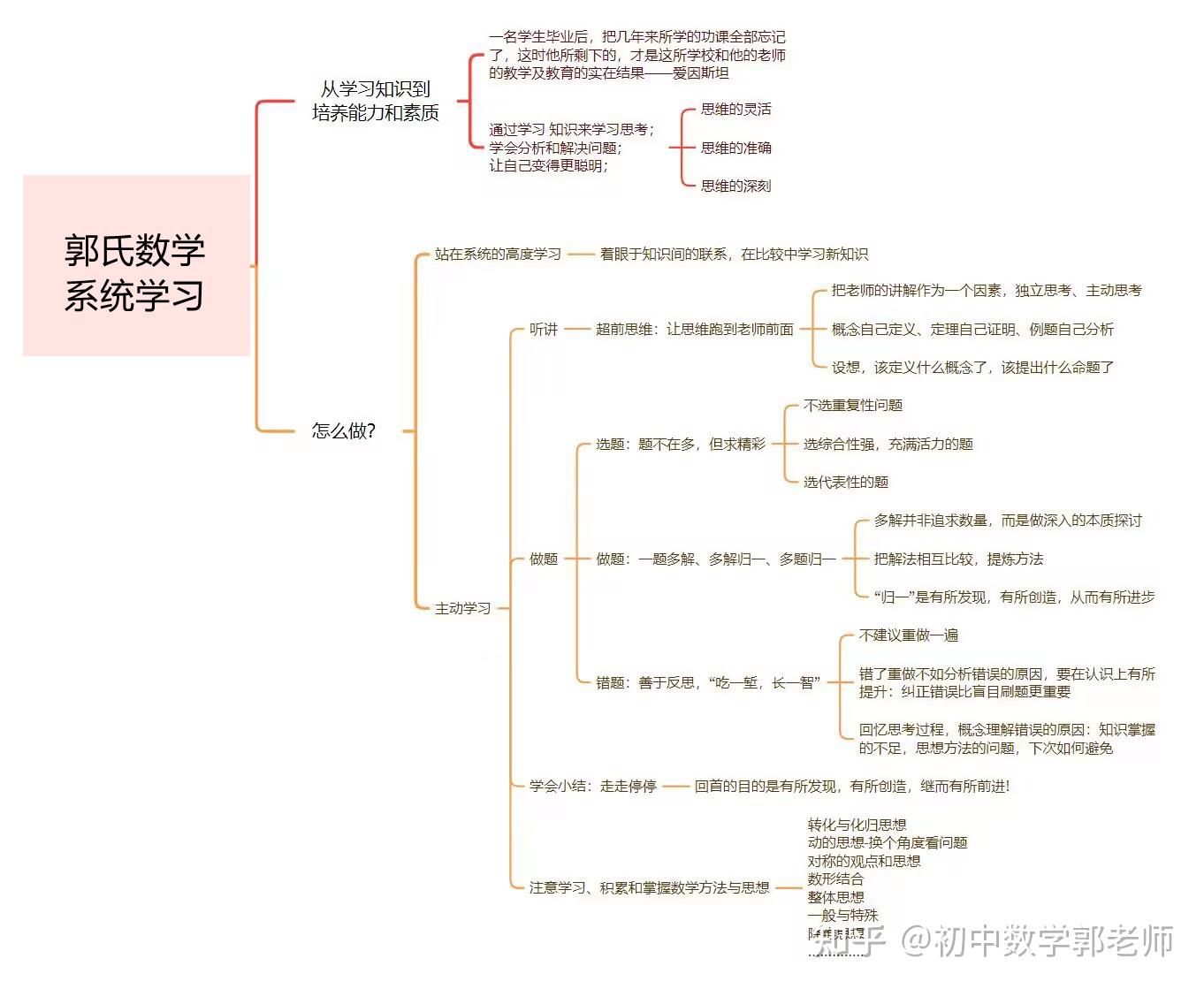 郭氏数学,系统学习3,数学每节课都有常考的经典题型,经过多年积累,我把初中数学常考的经典题型汇总,指导学生一个个攻克!经过这一步,基本就能达到80-85的水平!笔记本不能少,一方面记不会的题型解题方法,提高自己得分的上限,一方面记自己的失分点,提高自己得分的下限,牢牢地把自己的易错点背会达到敏感的程度,下次一看到类似的题就知道易错点在哪,还会错吗?