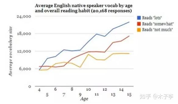 下面这个图表就更加直观了,展示了阅读对词汇量增长的影响: