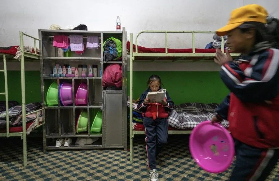 6月5日,扎西宗乡完全小学学生在宿舍看书。