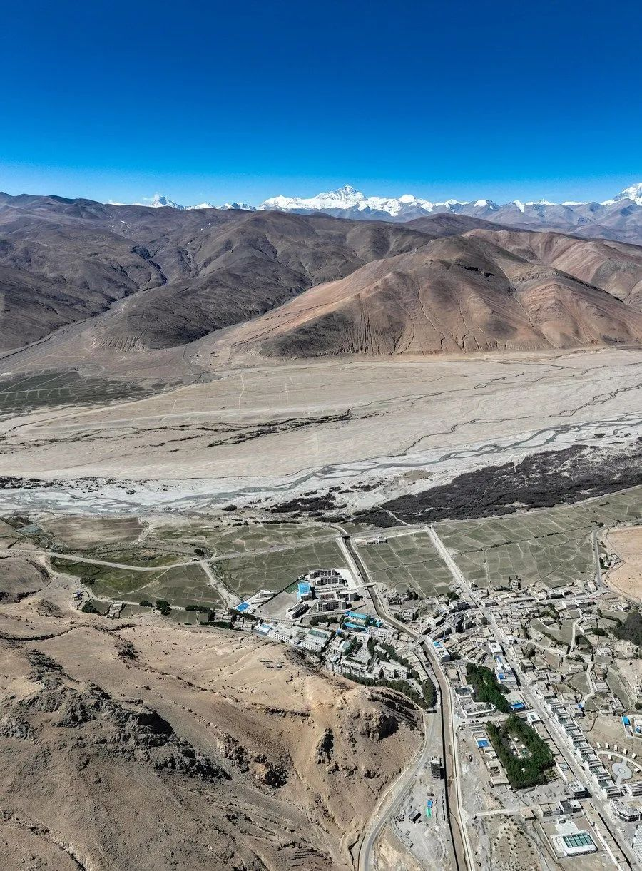 珠峰脚下的扎西宗乡完全小学,这里距离珠峰只有40多公里(6月5日摄,无人机照片)。