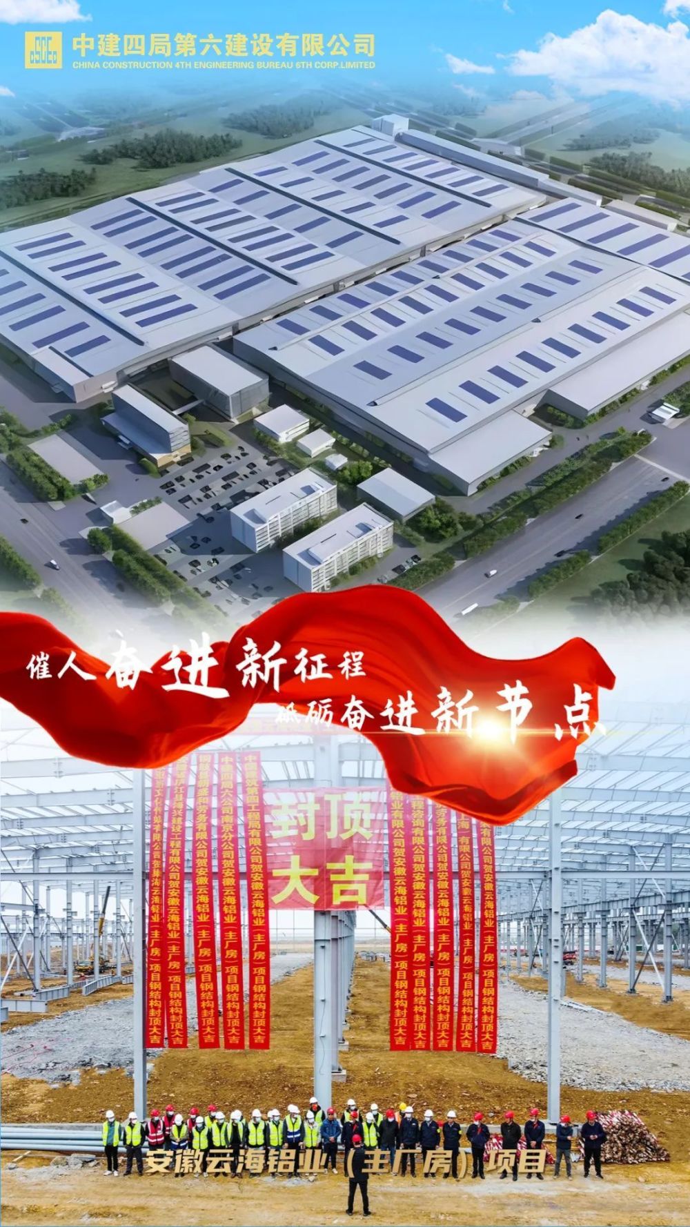 11月15日,安徽云海铝业(主厂房)项目钢结构主体封顶。