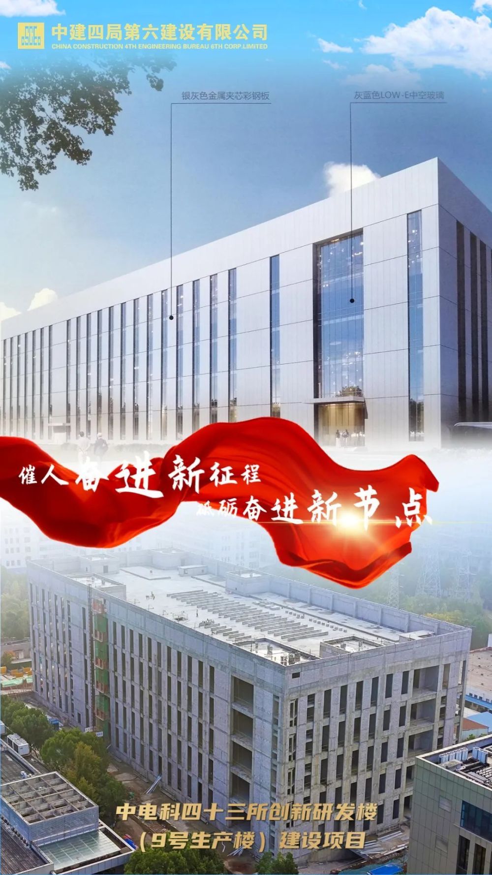 11月15日,中电科四十三所创新研发楼(9号生产楼)建设项目顺利通过主体结构验收,标志着该项目全面进入装饰装修和机电线管安装阶段。
