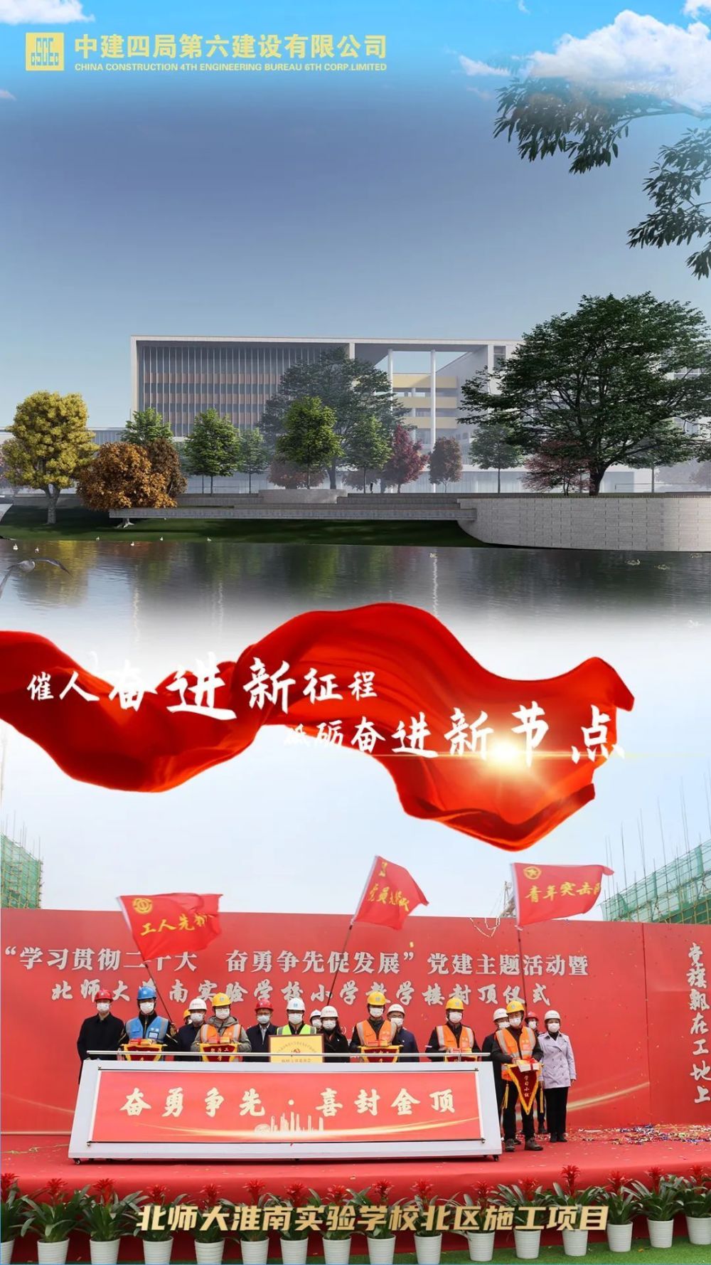 11月22日,由中建四局承建的北师大淮南实验学校北区施工项目小学教学楼顺利封顶。