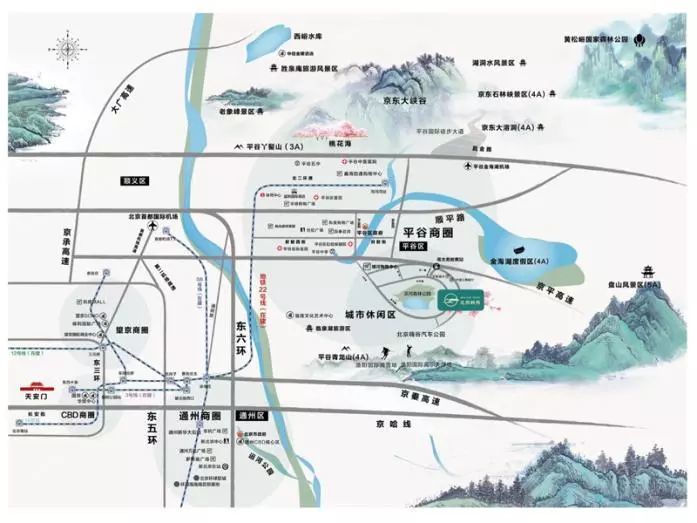 交通上,项目距京平高速南太务收费站仅1公里,距东六环约45公里。2020年地铁22号线通车之后,区域将真正实现半小时生活圈。届时,项目将成为一处难得的兼具城市与休闲属性的纯墅社区。