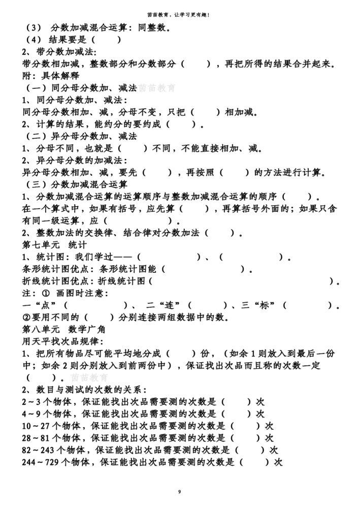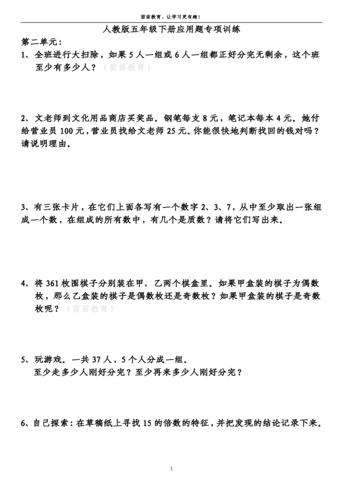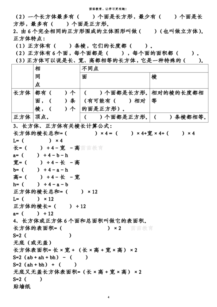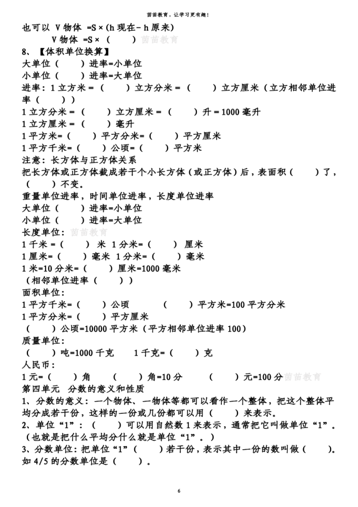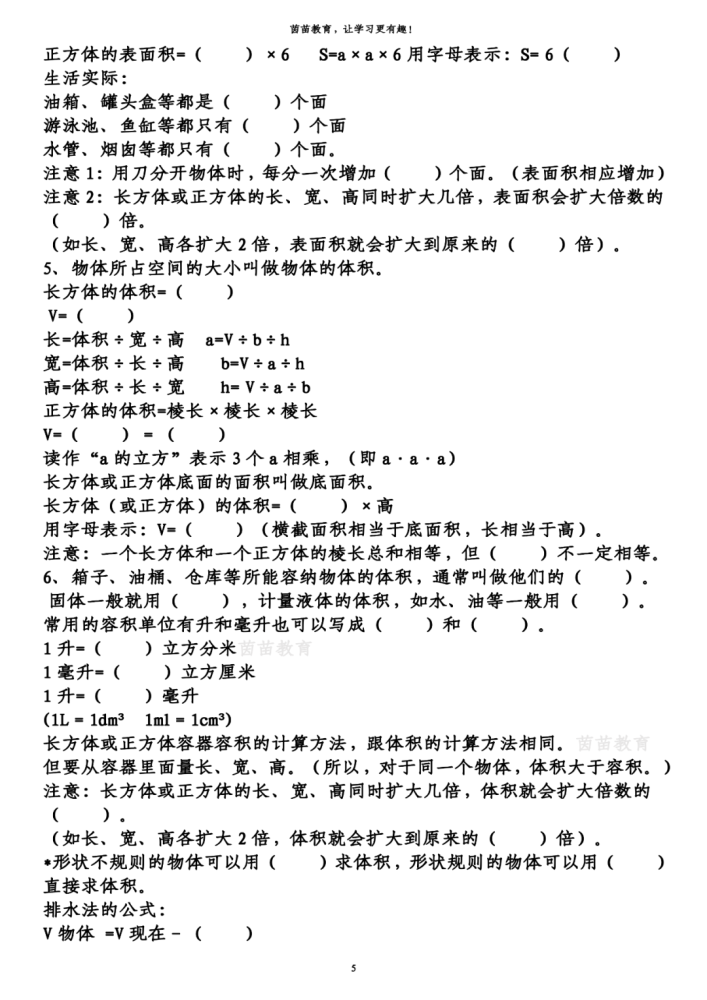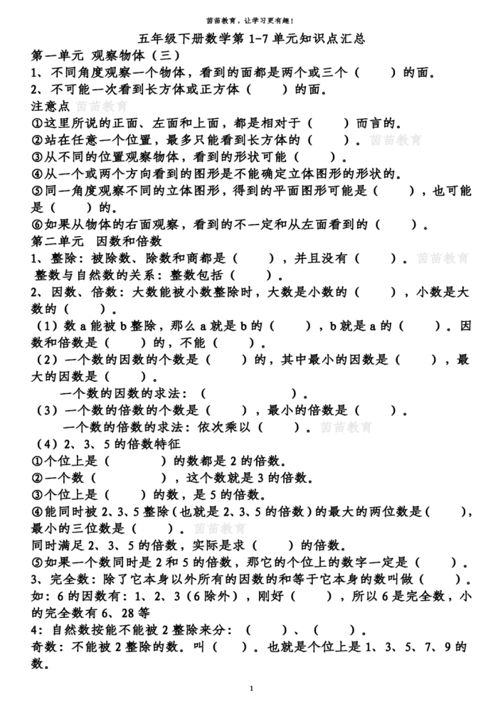 五年级下册数学知识梳理+重点题