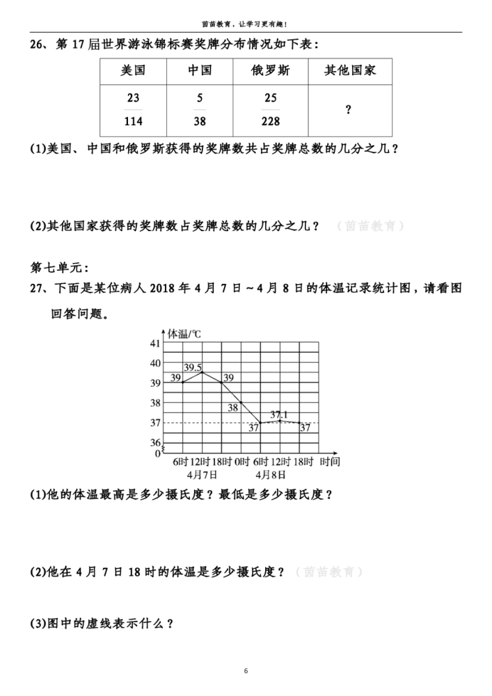 27、(1)答:他的体温最高是39.5 ℃,最低是37 ℃。