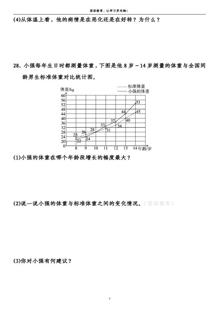 28、(1)答:他的体重在13岁~14岁年龄段增长的幅度最大。