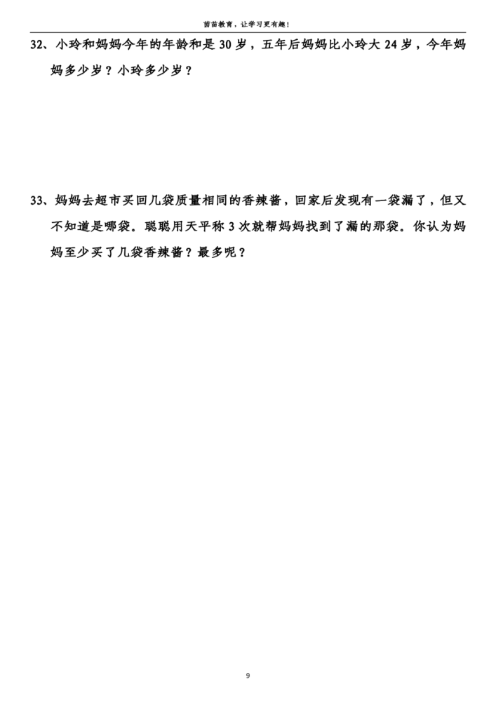32、妈妈:(24+30)÷2=27(岁)