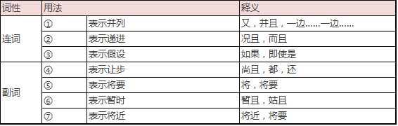 解释下列各句中加点的“且”字的意义和用法,将上表中对应的序号填到括号内。