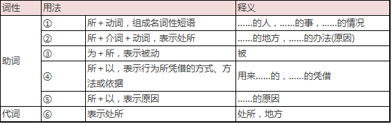 解释下列各句中加点的“所”字的意义和用法,将上表中对应的序号填到括号内。