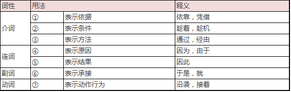 解释下列各句中加点的“因”字的意义和用法,将上表中对应的序号填到括号内。