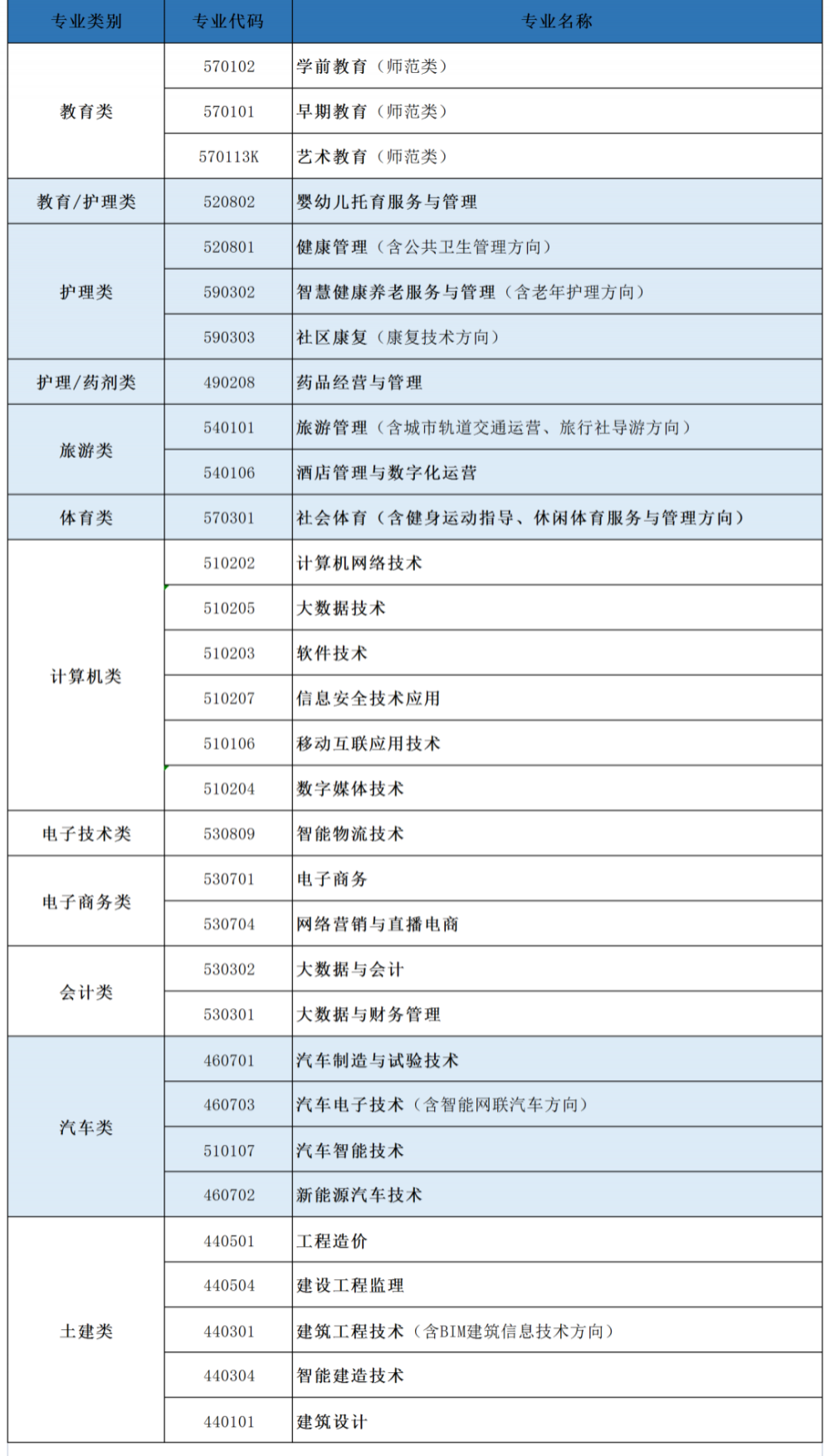 学院主动适应地方经济社会发展,围绕现代服务业、先进制造业及战略性新兴产业等方面紧缺人才需求,设置了学前教育类、健康管理类、汽车工程类、建筑工程类、电子信息类、互联网与大数据应用类、财经商务类和旅游类等8个专业群近30个专业。