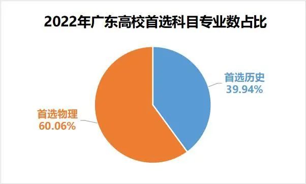 根据对《2022广东夏季高考专业招生目录》的统计可得,要求首选物理的专业占总专业数的60.06%,而要求首选历史的占39.94%。