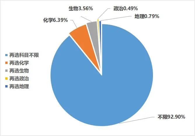 从再选科目方面看,绝大部分专业对再选科目不提要求,而要求必选科目的以化学、生物居多。